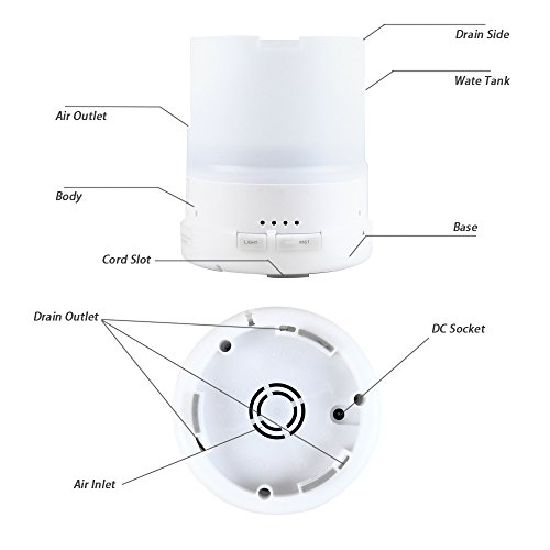 Nightlight & Auto Shut-Off - The diffuser is equipped with 7 color LEDs that help to create a wonderful ambience for relaxation. They are also soft enough that they can be used as a nightlight. The Auto Shut-Off function gives you peace of mind, as when the diffuser runs out of water, it will automatically turn off.