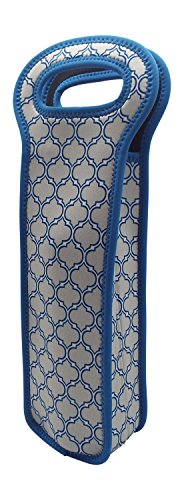 Zees Inc The Cool Sack-Neoprene Np110 Moroccan Pattern Single Wine Bottle Tote, Gray/Blue