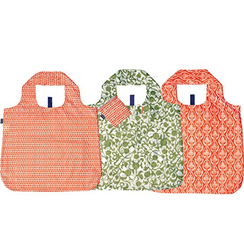 rockflowerpaper eco-friendly Orange Green Blu Bag Pack of Three Reusable Grocery Shopping Bags Totes