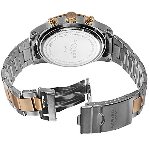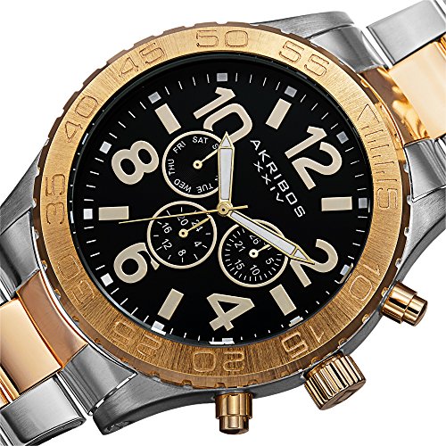 Akribos XXIV Men's AK763TTG Multifunction Swiss Quartz Movement Watch with Black Dial and Two T...