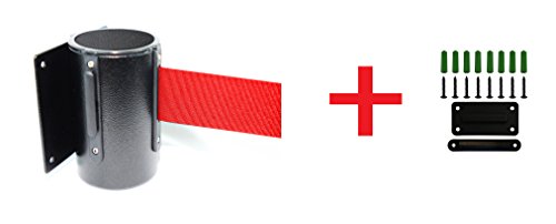 Retractable Wall Barrier 96"L, Red Belt With Tuff Tex Black Finished