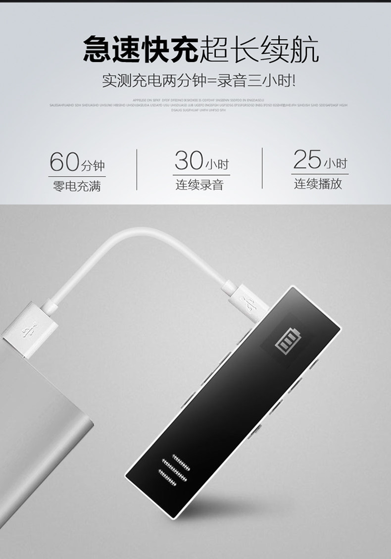 Recording time: Instand recording as long as 30 hours