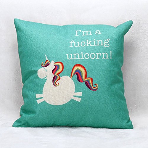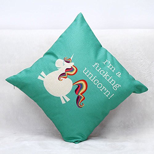 LeiOh Decorative Cotton Linen Pillow Shams Square Unique Printed Unicorn Pattern Sofa Throw Pillow Case Cushion Cover 18 x 18 Inches