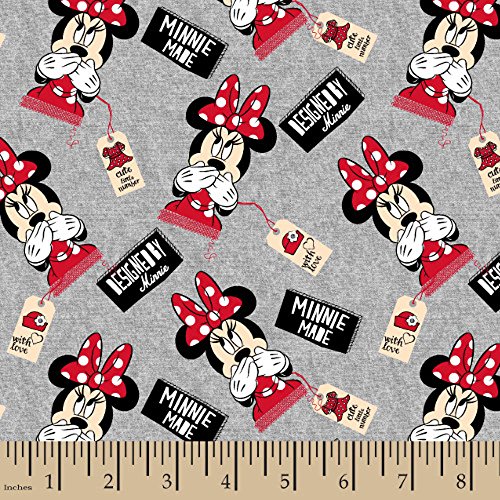 Disney 59770-R32331 Cotton Designed by Minnie Jersey Knit Fabric, Heather Grey