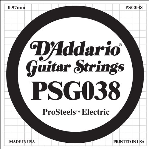 Studio : D'Addario Co. Inc Publisher : D'Addario Co. Inc Binding : Electronics Product Description PSG038 is a .038 gauge ProSteels electric guitar string. Perfect as a replacement string or for creating custom sets. Part of the D'Addario ProSteels string series. D'Addario XL ProSteels utilize a highly magnetic, corrosion-resistant steel alloy that delivers super-bright tone without shrill overtones. They offer a palette of harmonically rich, brilliantly penetrating highs combined with pronounced, tight-and-tough lows. If you're looking for more crunch, bite, and sustain, ProSteels are the choice for you.D'Addario, the world's largest manufacturer of musical instrument strings, is known as The Players Choice with a reputation for unsurpassed quality and consistency. All D'Addario strings are manufactured in the U.S.A. using proprietary, digitally controlled, state-of-the-art machinery for unmatched performance, set after set. 0