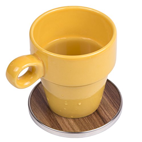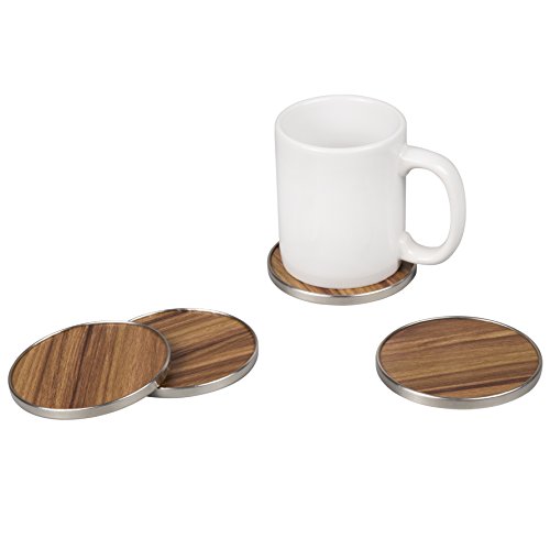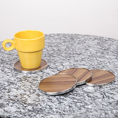 Creative Home 50248 Set of 4 Fiber Board Coaster with Acacia Wood Finish and Stainless Steel Trim, Brown