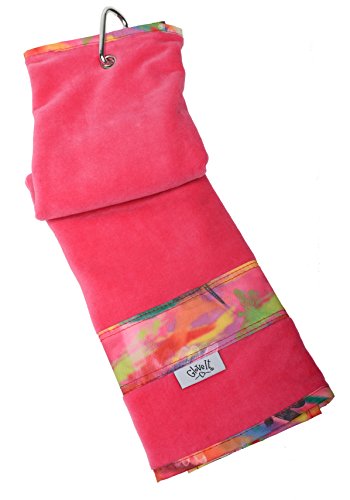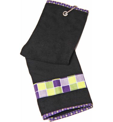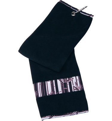Our 100 percent cotton tri-fold ladies golf towels are functional and fashionable. Measures 16 x 5 with carabineer.
