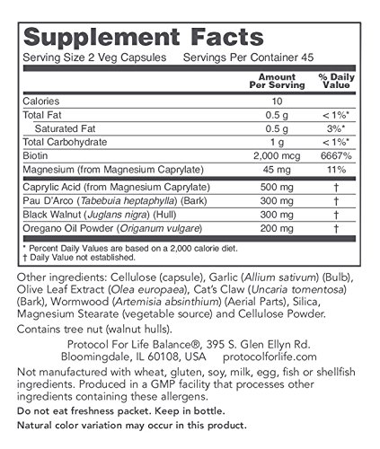 -. Title : Protocol For Life Balance - OrthoFlora Yeast Support - with Paul D'Arco, Oregano Oil, Black Walnut & Caprylic Acid to Support Intestinal Flora - 90 Veg Capsules