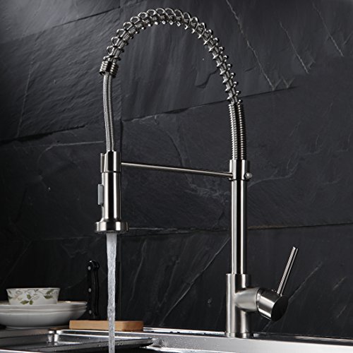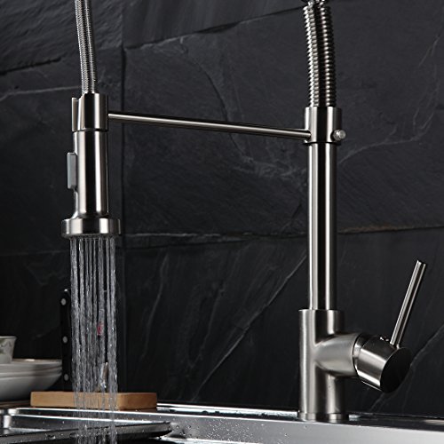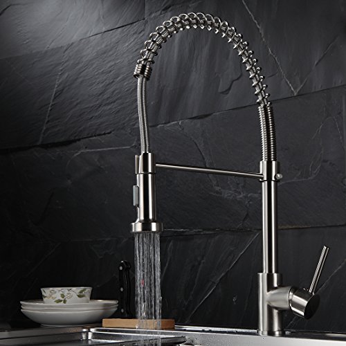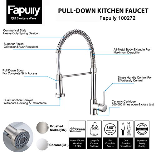 Fapully Commerical Spring Pull Down Faucet Single Handle Kitchen Sink Faucet with 2 Function Sprayer,Brushed Nickel