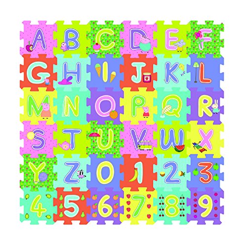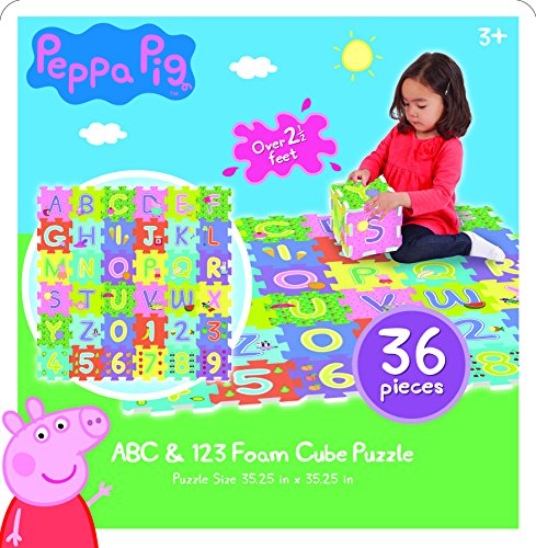 Learn your alphabet and numbers with your favorite Peppa Pig 36 large, foam puzzle pieces in which you can mix and match to make words or learn to count.