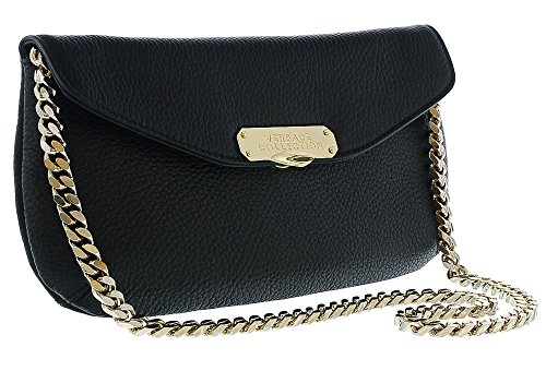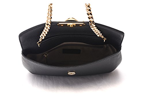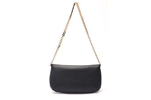 -. Feature : 100% genuine leather - Clutch/Shoulder bag / Gold tone chain strap - Snap on closure- Versace signature name plaque / Single strap d: 24in - Dimensions" 11in-6in-1in / Zippered interior pocket and slide accessory pocket / Timeless versatile style, compact - easy wear- Made in Italy-Comes in Versace Collection signature dustbag