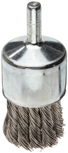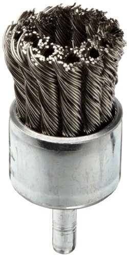 Weiler Wire End Brush, Hollow End, Round Shank, Stainless Steel 302, Partial Twist Knotted, 1-1/8" Diameter, 0.02" Wire Diameter, 1/4" Shank, 22000 rpm (Pack of 1)