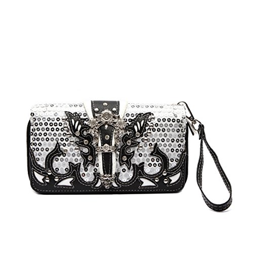 (Cowgirl Trendy)/Accessories/Wallets, Money Key Organizers/DIRECT FROM USA/Western Wallet - Shiny Sequin Butterfly with Silver Buckle Wallet