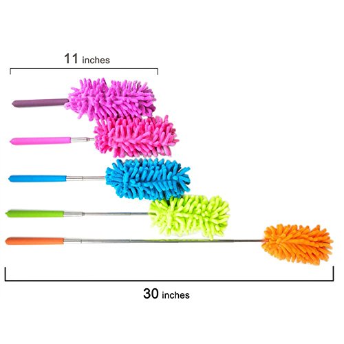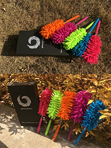 Phoenixes Retractable Long-Reach Washable Dusting Brush Microfiber Hand Duster with Telescoping Pole (Pack of 5)