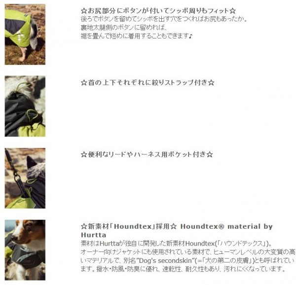 | 首周りからしっぽ、おなかまですっぽりカバーの冬用ジャケット。 |