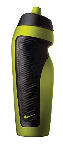 Product Description Contents: 59% Polyethylene, 24% Thermoplastic Elastomer, 16% Polypropylene, 1 % Silicone. Leak-proof valve. Water when you need it. No mess or waste. Asymmetrical one-hand design. Easier to grab and hold on the sideline or in the gym. 20 oz./600ml capacity. 0