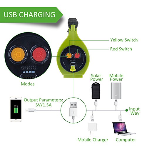 Power indicator: 4 blue LEDs indicate you the battery level of this camping lantern. You can recharge the lantern timely when the indicator ligh drops to only one LED indicating.
