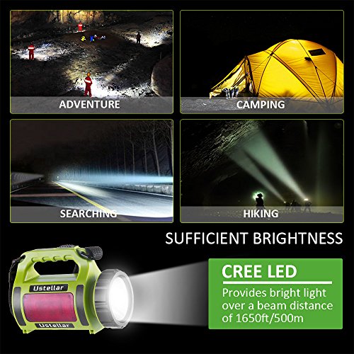 Ustellar Rechargeable CREE LED Spotlight, Multi-functional Camping Lantern, Waterproof LED Searchlight, High Power Beam Flashlight ,2000mAh Power Banks