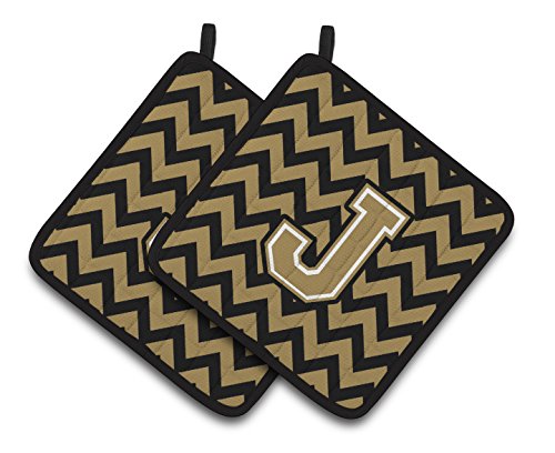 Caroline's Treasures Letter J Chevron black & Gold Pair of Pot Holders CJ1050-JPTHD, 7.5HX7.5W, Multicolor