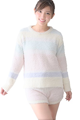 -. Title : (アプラージュ)UPLAGE レディース もこもこルームウェア マルチボーダー柄 ショートパンツ 上下セット RW0037