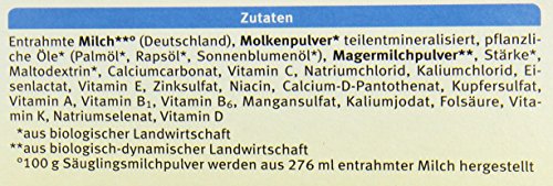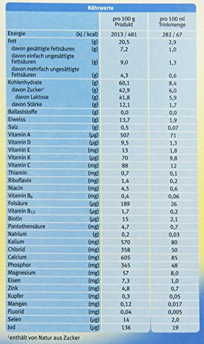 Entrahmte MILCH** (Deutschland), MOLKENPULVER* teilentmineralisiert, Pflanzliche Öle* (Palmöl*, Rapsöl*, Sonnenblumenöl*), MAGERMILCHPULVER**, Stärke*, Maltodextrin*, Calciumcarbonat, Vitamin C, Natriumchlorid, Kaliumchlorid, Mangesiumcarbonat, Eisenlactat, Vitamin E, Zinksulfat, Niacin