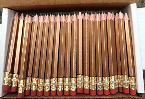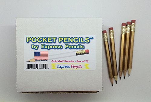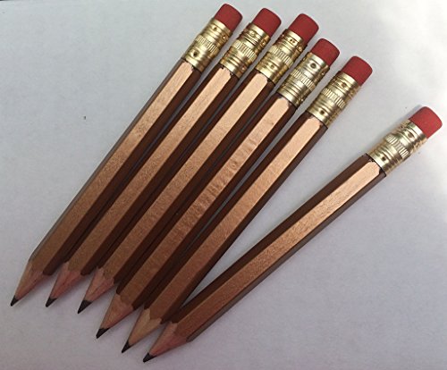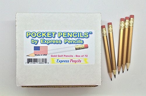 Half Pencils with Eraser - Golf, Classroom, Pew - Hexagon, Sharpened, #2 Pencil, Color - Gold , Box of 72