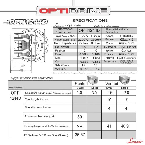 Lanzar OPTI1244D Opti-Drive 2200 Watt 12-Inch Subwoofer Driver DVC - Set of 1