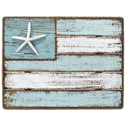 - A wood wall sign in the design of a coastal flag
