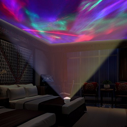 Project realistic aurora borealis and nebular light, 45 degree tilt, angle adjustable, help project on wall or ceiling, create a calm and relaxed atmosphere which is more fantastic than other ocean wave projectors.