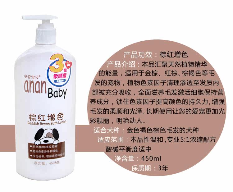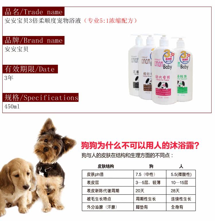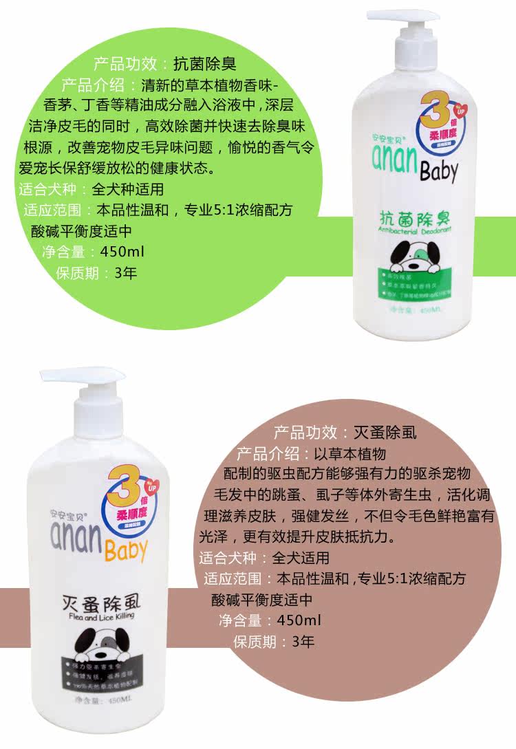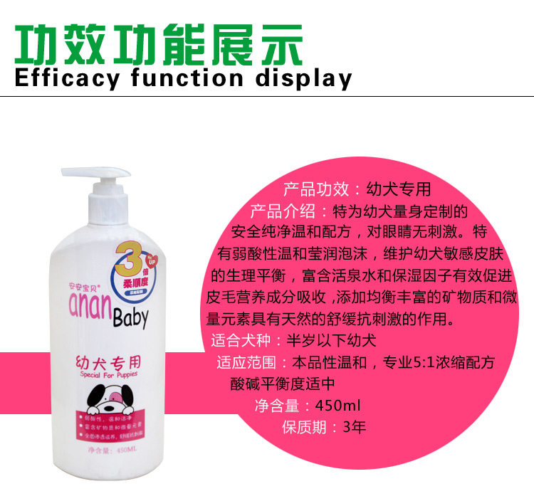 Name: Ann baby 3 times of compliance (5:1 professional pet bath concentrated formula)Period of validity: 3 yearsSpecifications: 450ml
