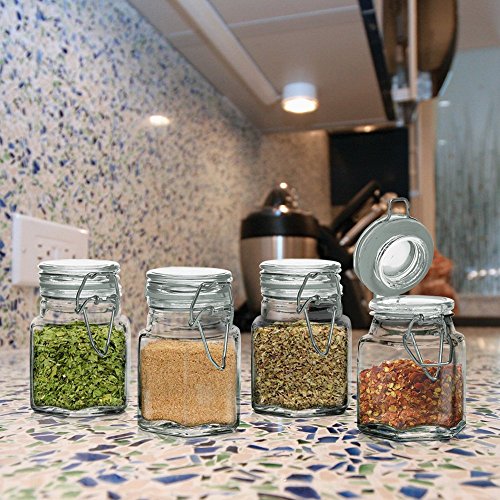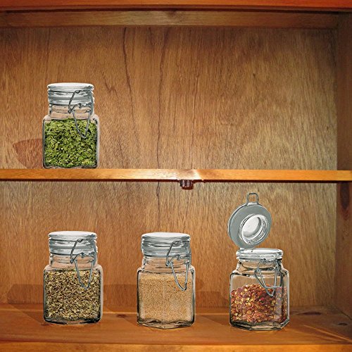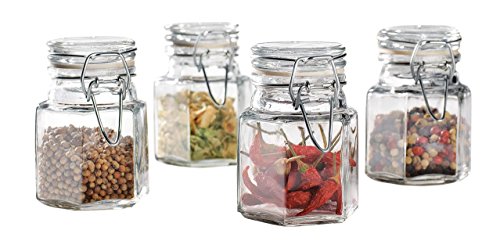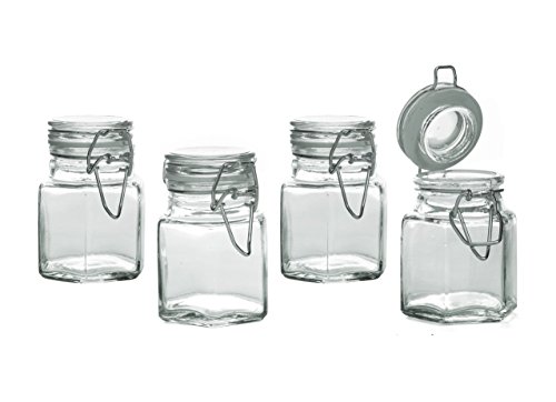 Mini Set of 4 Hexagon Glass Jars 3.38-oz, Bail & Trigger Locking Lids - Spice, Herb, Baby Food Storage and Display Containers Set