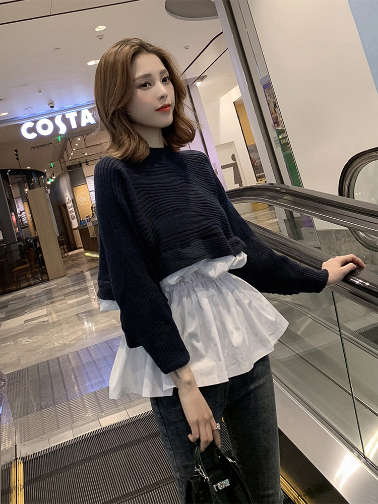 ップス レディース 重ね着風 プルオーバー ニット シャツ 大人かわいい