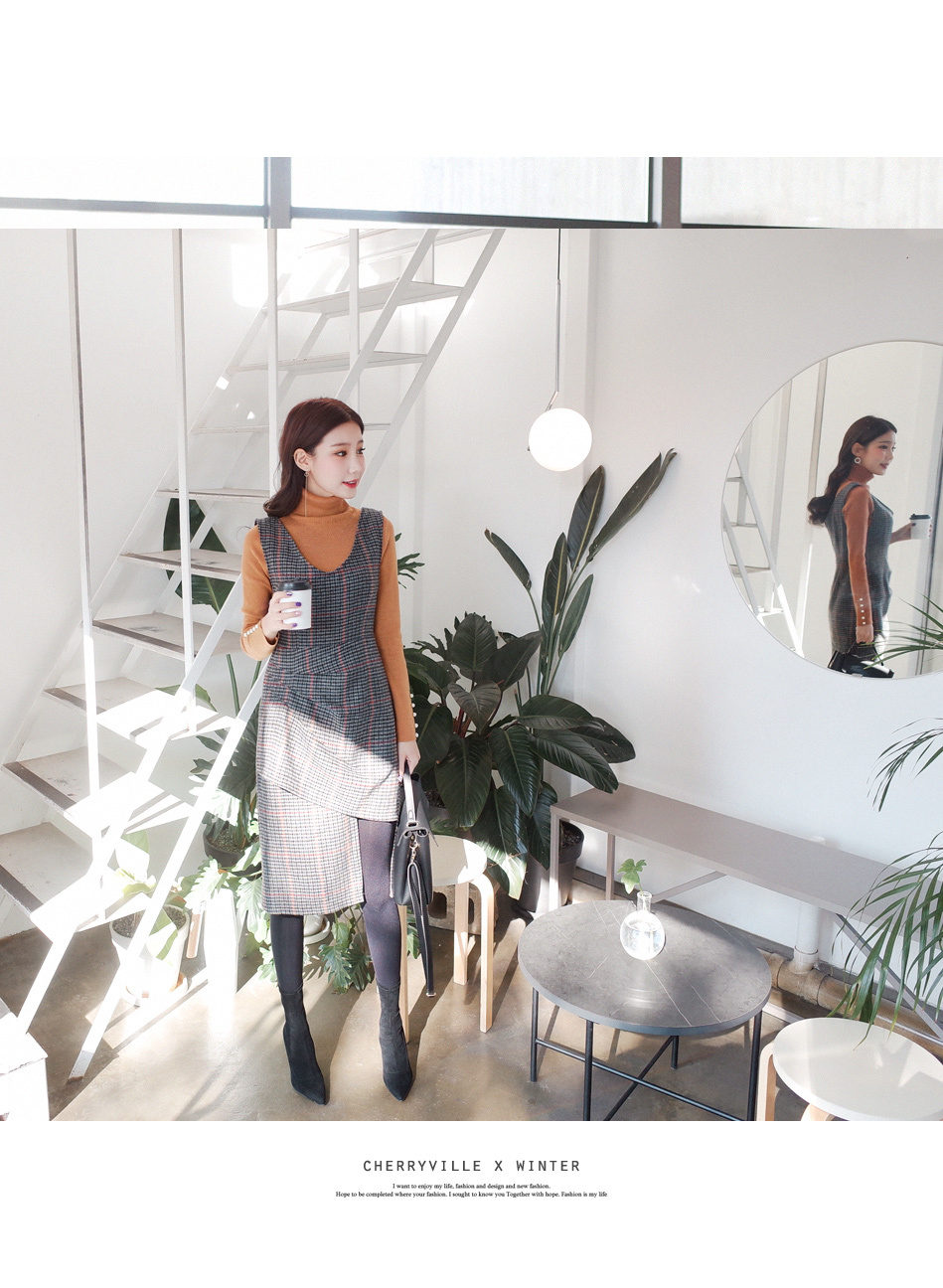 데일리한 체크 패턴에 세련된 디자인이 예쁜 원피스입니다