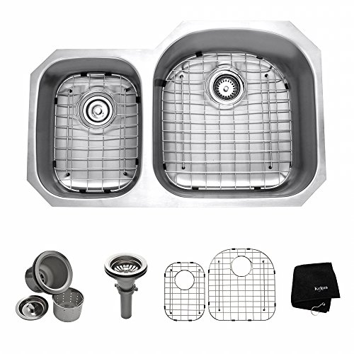 Kraus KBU25 32 inch Undermount 60/40 Double Bowl 16 gauge Stainless Steel Kitchen Sink