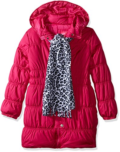 Pink Platinum Big Girls' Long Puffer Jacket with Accessories, Black, 14/16