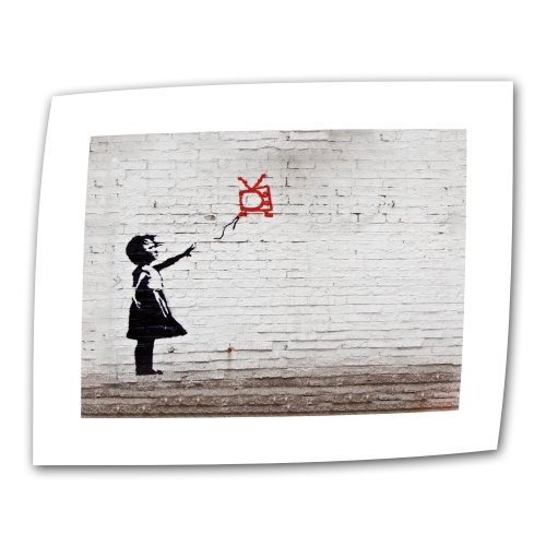 Art Wall Balloon TV Girl by Banksy (Reproduction) Flat/Rolled Canvas Art with 2-Inch Accent Border, 18 by 24-Inch