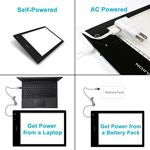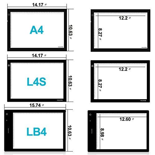 Maximum Brightness - 1500 Lux, which is brighter than the Huion L4S; Illuminate Uniformity 1280 cd/ m2 (AC powered), 544 cd/ m2 (battery powered)