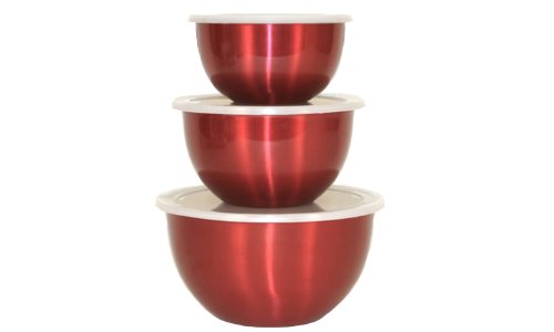 Grande Epicure Heuck 36150 Classics Series Red Stainless Steel Covered Bowl Set with Easy Seal Lids