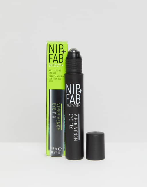 Viper Venom Eye Fix by NIP + FAB- Revolutionary eye gel with a cooling roll-on applicator- Mimics effect of protein found in Temple Viper venom- Aims to target appearance of fine lines and wrinklesPRODUCT CODE
