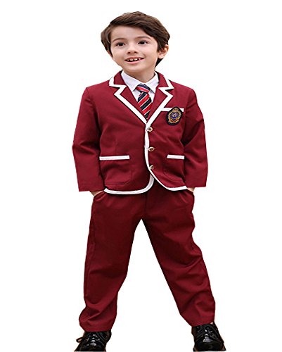 -. Feature : 【素材】ポリエステル / 【カラー】ネイビ ワインレッド / 【セット内容】女の子:ジャケット+シャツ+スカート+蝶結び+バッジ / 男の子:ジャケット+シャツ+ズボン+ネクタイ+バッジ / 【サイズ】100 110 120 130 140 150 160 170