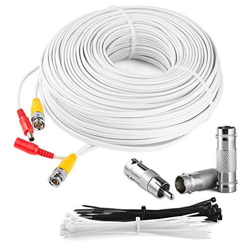 BNC 100 Feet Cable Security Camera Kit: All In One CCTV DVR Video & Power Flat Cable Set - DC Male, DC Female To BNC Electronics Adapter Accessories - MAXIMM