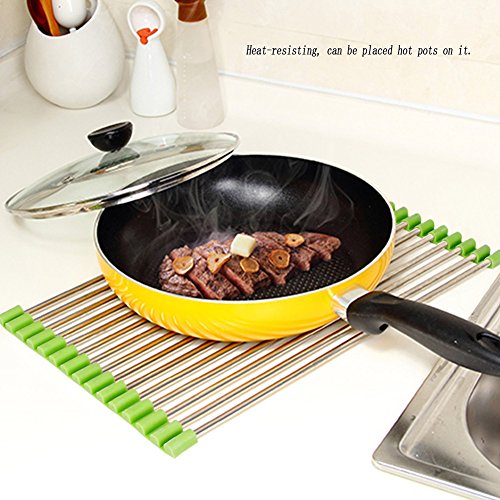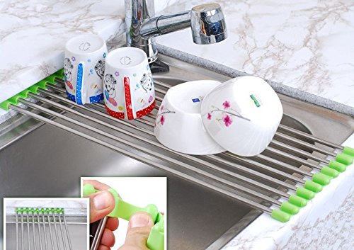 Roll-Up Dish Drying Rack, Over the Sink Stainless Steel Multipurpose, 18.5” x 15.7”(Light Green)