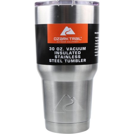 -. Brand : Ozark Trail -. Feature : Great for both hot and cold liquids / Durable, made of high-grade, double-walled stainless steel / Same performance as that famous Y brand for half the P.R.Ice -. ProductGroup : Kitchen -. ProductTypeName : KITCHEN -. Title : Ozark Trail 30 Ounce Tumbler Powder Coated Tumbler 2 Pack with 2 Bonus handles
