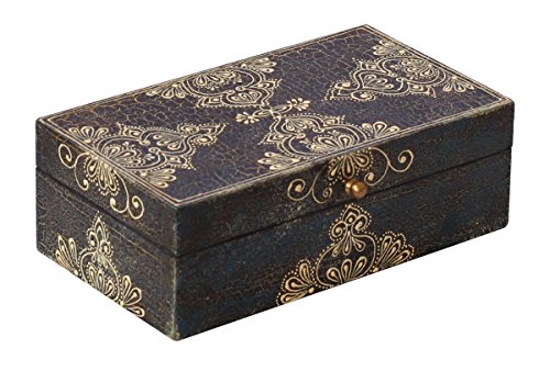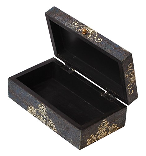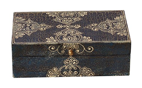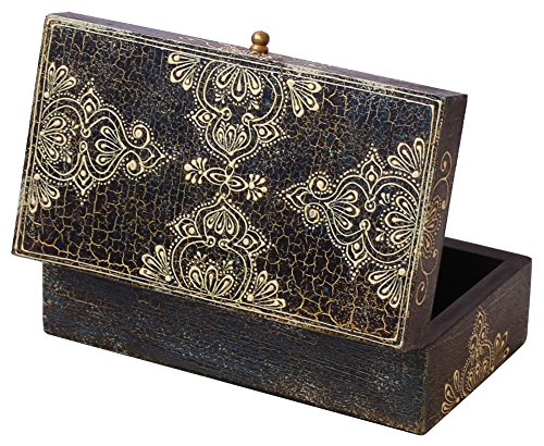 Decorative 8" Wooden Royal Antique Look Jewelry Box / Trinket Box / Keepsake Box with Crackled-Look Old-World (Cone-Painting Art) in Traditional-Look Motifs