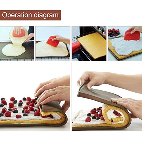 Baking Mat, Swiss Roll Cake Roller, Haranges Non-stick Silicone Oven Mat Cake Roll Mat Baking Mat Functional Baking Macaron Cake Pad Swiss Roll Pad Bakeware Baking Tools (Random) Pack of 1