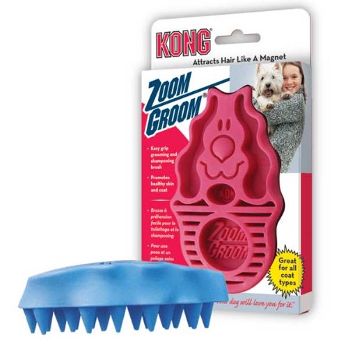 -. Binding : Misc. -. Brand : KONG -. Feature : Best grooming and shampooing brush available / Removes loose hair like a magnet / Stimulates capillaries and natural oil production / Effective for all dogs and coat types / Made in the USA with Natural Rubber -. Label : KONG -. Manufacturer : KONG -. Model : ZG2-PARENT -. MPN : ZG2-PARENT -. PackageQuantity : 1 -. PartNumber : ZG2-PARENT -. ProductGroup : Pet Products -. ProductTypeName : PET_SUPPLIES -. Publisher : KONG -. Studio : KONG -. Title : KONG ZoomGroom, Dog Grooming Toy -. Warranty : Guarantee against manufacturer defect.
