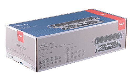 This heavy, thick stone top works as a grill. The supporting stainless steel rack is used to place the stone grill in the oven and then to the table. It remains hot, allowing guests to grill their own food at the table. It comes with a tray and one or two additional burners to extend grilling time. For item #41315-04, the overall length is 17-inch by 4-inch high and 9-inch by 4-inch high for item #41315-02.Feature
