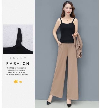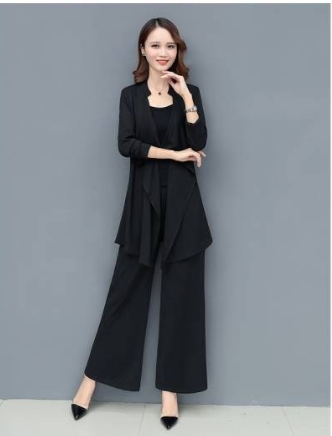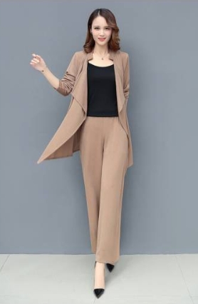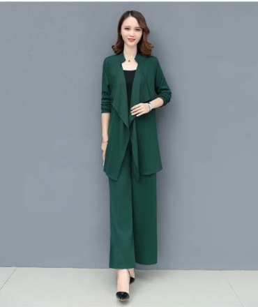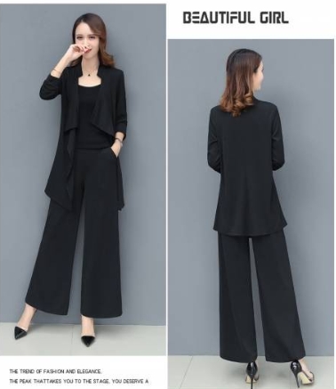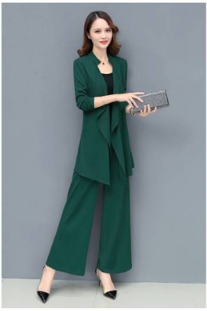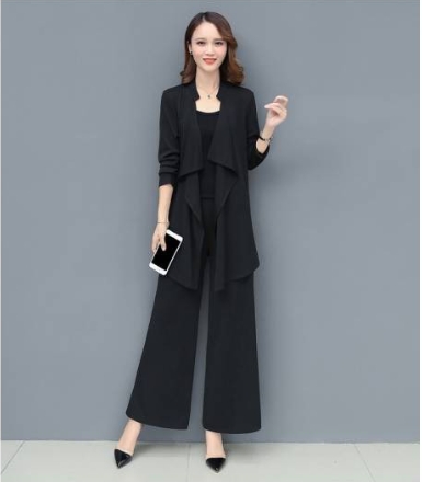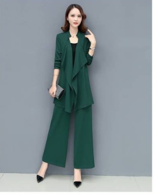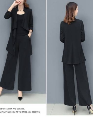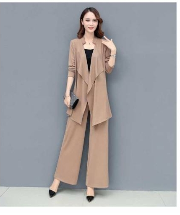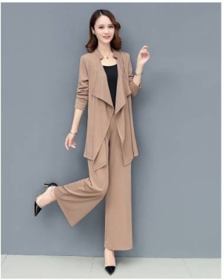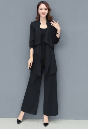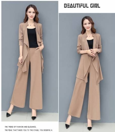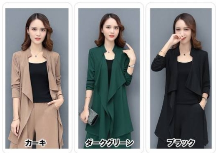 「ロング丈ジャケット×キャミソール×ワイドパンツ」がセットになったスリーピースです。