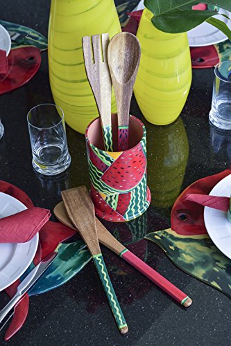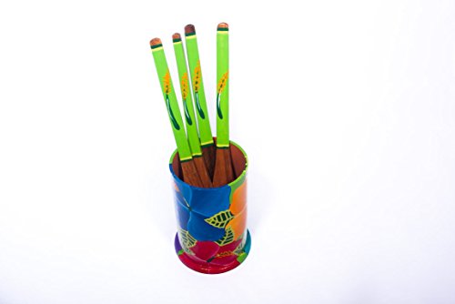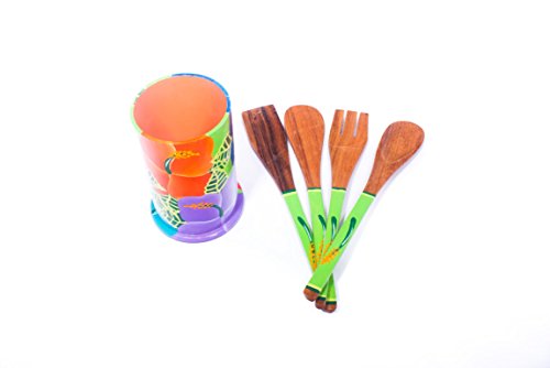 Hand Painted wooden Kitchen Utensil Set with Holder with a Hibiscus Design - Kitchen Decoration - Eco-friendly - Beautiful Gift - 4.9 inch by 4.9 inch - Nativo Crafts
