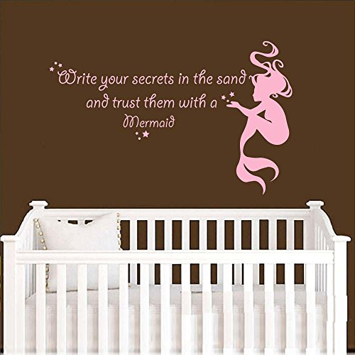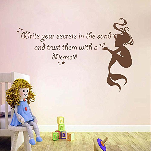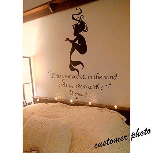 -. Title : BATTOO Girls Room Wall Decal Mermaid Wall Sticker Write your secrets in the sand Beach Vinyl Lettering Baby Nursery Kids Room Wall Decor